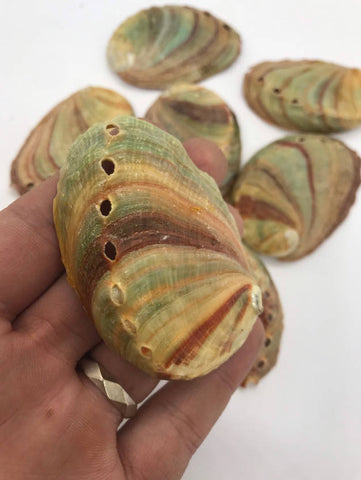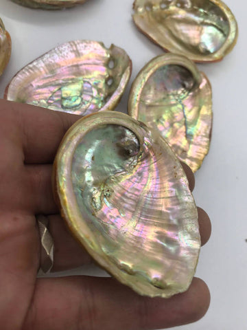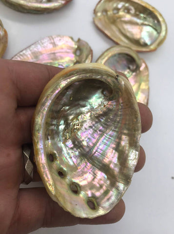 3" - 3.5" natural shell is ideal for use burning sage sticks, powders or leaves or incense resin, etc. They also make great little display pieces for holding tumble stones, general home decor, etc. Each Abalone shell is natural and unique so do expect some color and minor size variance .Inside polished and outside remains natural.Abalone shells are a great accessory to aid your smudging ritual. The natural shape of the shell makes them super easy to hold and carry and the shells can take the heat of the burning sage.