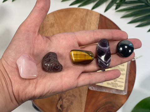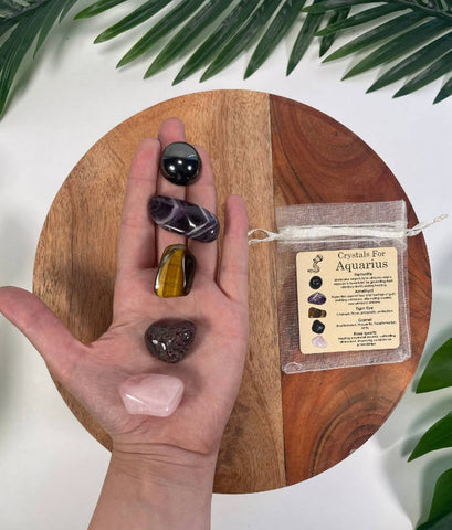 AQUARIUS Crystal Set, 5x Crystals Set For AQUARIUS ( Hematite, Amethyst, Tiger Eye, Garnet, Rose Quartz)