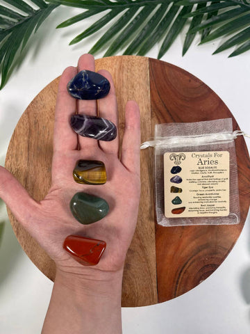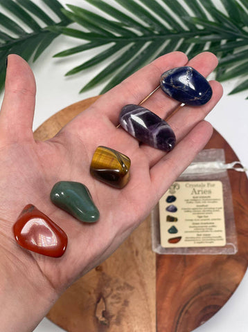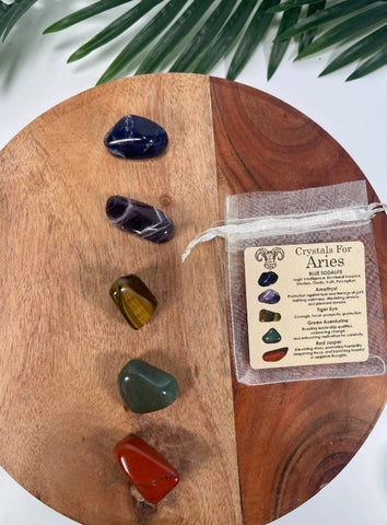 ARIES Crystal Set, 5x Crystals Set For ARIES ( Blue Sodalite, Amethyst, Tiger Eye, Green Aventurine, Red Jasper)