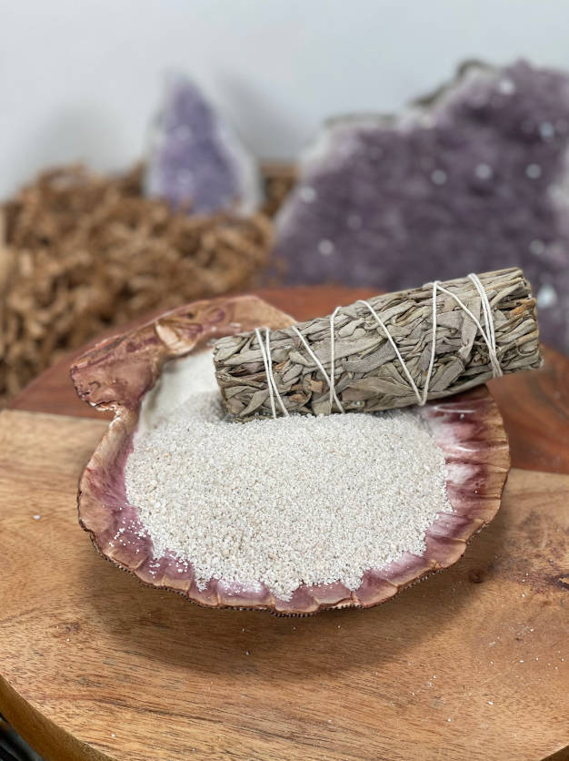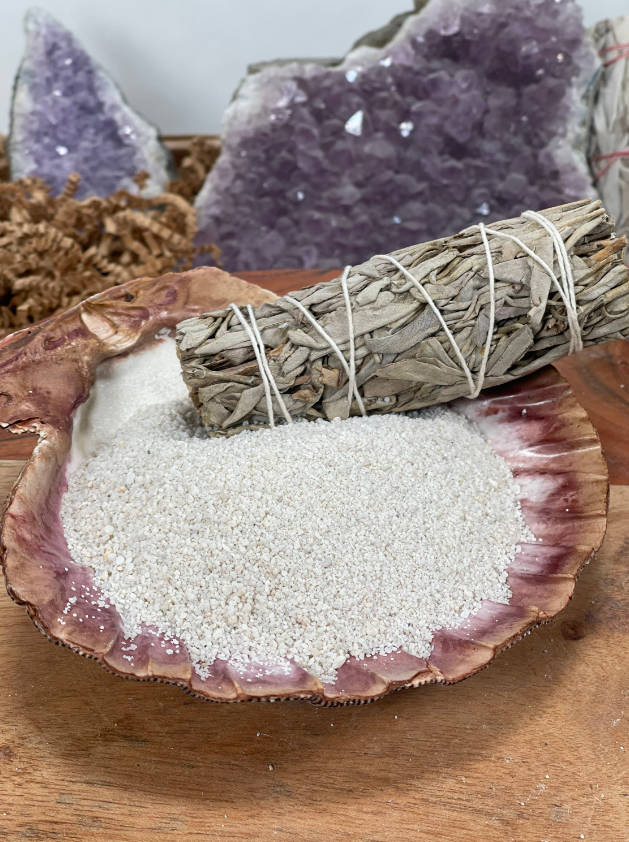 This sand is for use in burners, cauldrons, and shells to help absorb heat from charcoal or to extinguish smudge sticks.