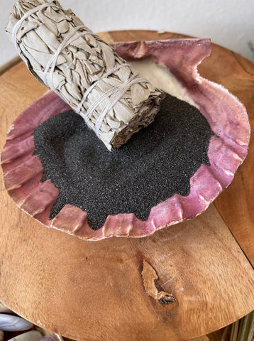 This sand is for use in burners, cauldrons, and shells to help absorb heat from charcoal or to extinguish smudge sticks.