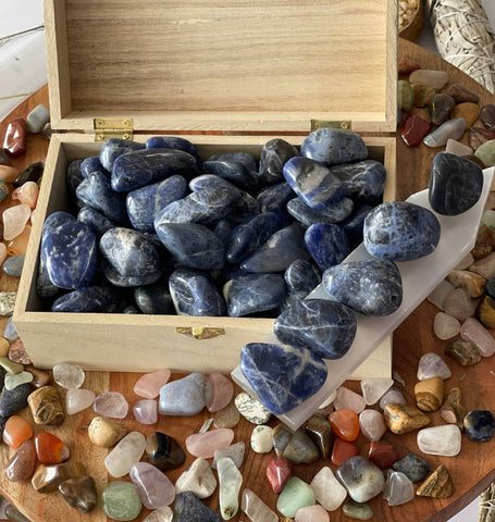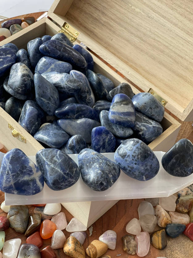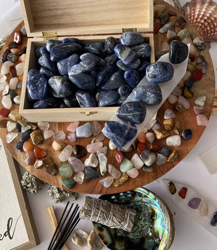 To cleanse your Sodalite with sage or Palo Santo, simply light your stick/cone/smudge stick and envelop your crystal with the smoke of the cleansing plant. Hold the intention in your head to remove any energies that don't serve you. (YOU CAN FIND PALO SANTO AND SAGE IN OUR STORE)