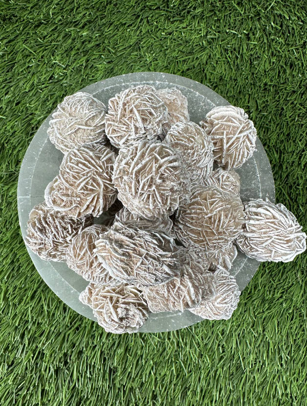 PLEASE NOTE: Selenite is form of gypsum which is a soft & porous mineral. Therefore, it is VERY IMPORTANT to keep your Selenite dry. Selenite will almost always have some form of chips, nicks, flaking, inclusions and other imperfections. Drilled holes, Etchings, or engravings may also not be perfectly centered or straight. As you use your selenite for cleansing, scratches and chips will be unavoidable, but the markings make each piece special and uniquely yours!