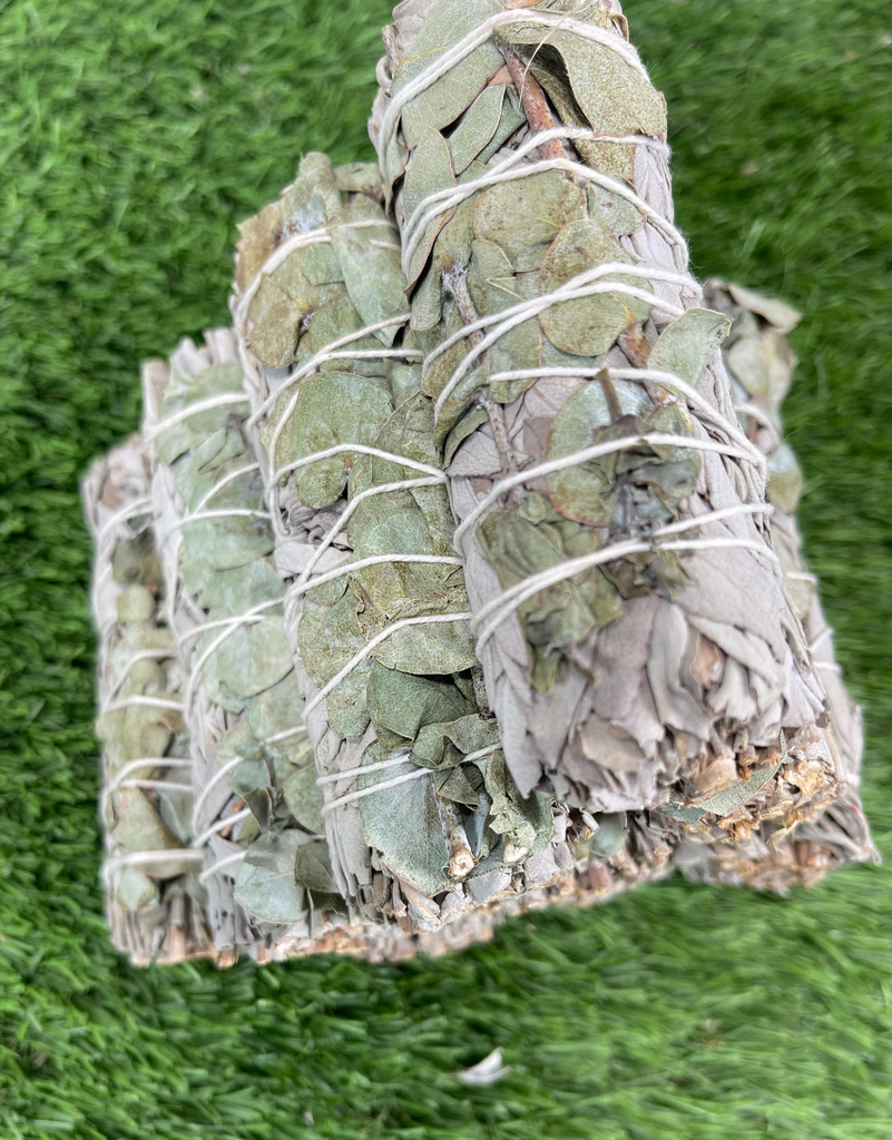 Cleansing with the smoke of our sacred white Sage with Eucalyptus sticks is a wonderful thing to do when moving into a new home, after an argument, after illness, if you suspect danger, or just to revitalize your space.