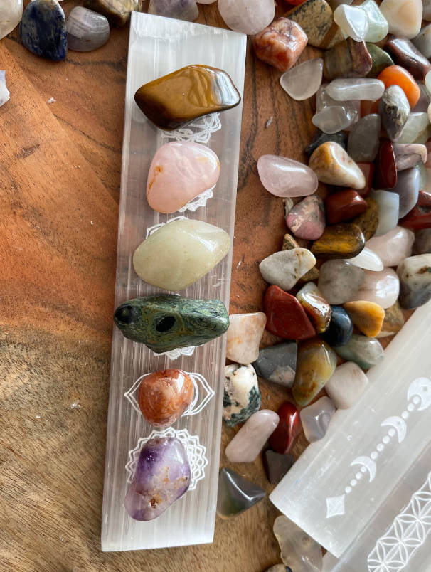 Selenite is unlike any other crystal. It doesn’t need to be charged, and it will amplify the energy of all crystals set upon it.