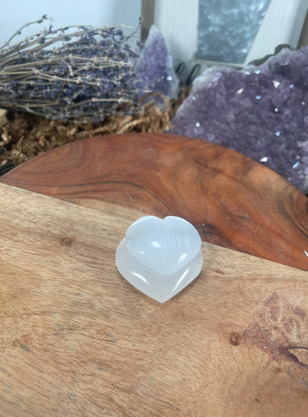 SELENITE Crystal Hearts, Free Shipping, WHOLESALE PRICES, Selenite in Heart shape 2.25"x2"x0.875" thick, Best for gift sets, hand carving