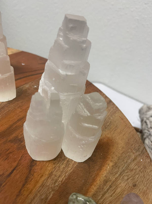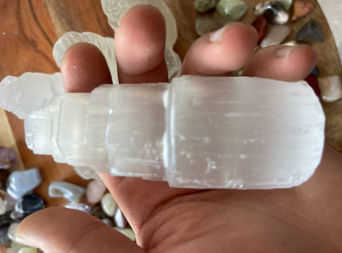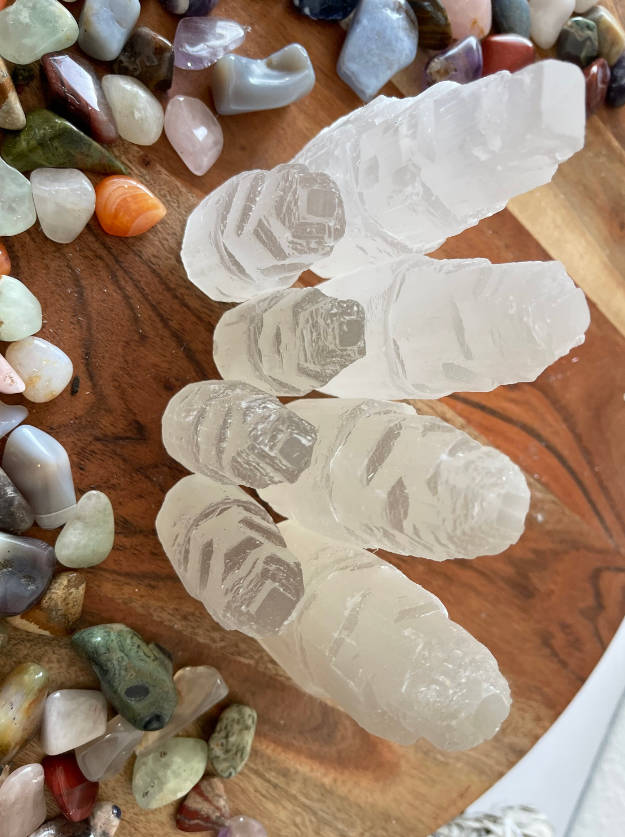 Selenite is unlike any other crystal. It doesn’t need to be charged, and it will amplify the energy of all crystals set upon it.
